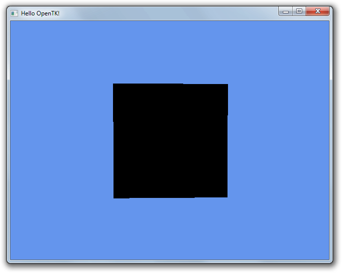 Now it looks more like a square (it’s rotated, so it’s not perfect from this viewpoint), but it turned black. We just forgot to add more colors for the other vertices. Replace the coldata part of OnLoad with the following: